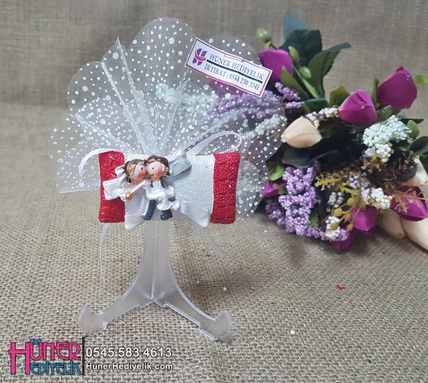 Sevgiyle hazırlanmış bu nikah şekeri, özel günlerinize tatlı bir dokunuş katmak için tasarlandı. kırmızı yastıkta gelin damat biblodan nikah şekeri, hem zarif görünümü hem de işlevselliği ile dikkat çeken hoş bir hatıra. Üzerinde sevimli bir gelin ve damat figürü taşıyan bu ürün, kırmızı yastık detayı ve beyaz dantel tülüyle şıklığı bir araya getiriyor. Kutlama atmosferinize neşe ve zarafet katarken, konuklarınızın da gülümsemesine sebep olacak samimi bir detay sunuyor.